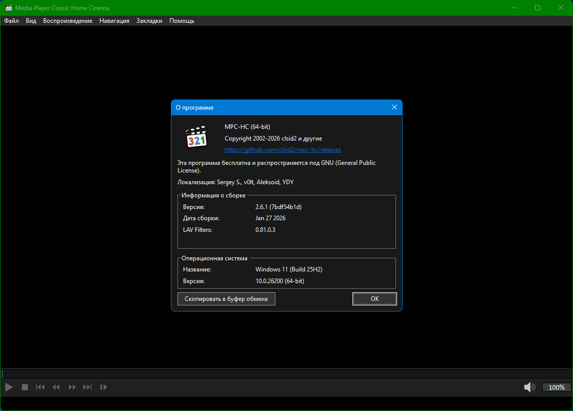 Media Player Classic Home Cinema (MPC-HC) 2.6.1.0 RePack (& Portable) [2026, Multi/Ru] 12474_Media_Player_Cl.torrent (36 MB)| Всего комментариев: 0 | |